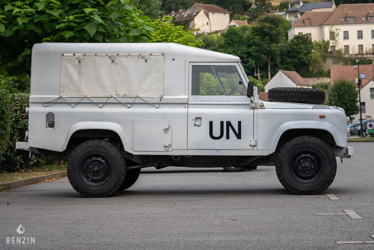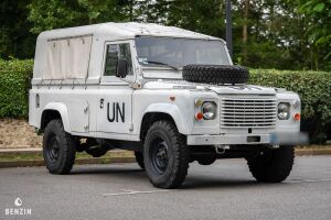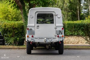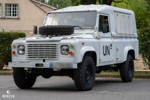 Ce Land Rover 110 Tithonus de 1991 est un ex-véhicule des télécommunications de l’armée anglaise ayant servi au Kosovo et qui a ensuite été réhabilité pour L’ONU. Ces derniers n’ayant pas honoré leur commande, ils n’auront finalement jamais servi. Il affiche 5500 km. Le vendeur indique que le véhicule est en état général moyen et qu’il a bénéficié de frais récents. Ce Land Rover dispose d’une carte grise CTTE 3 places.