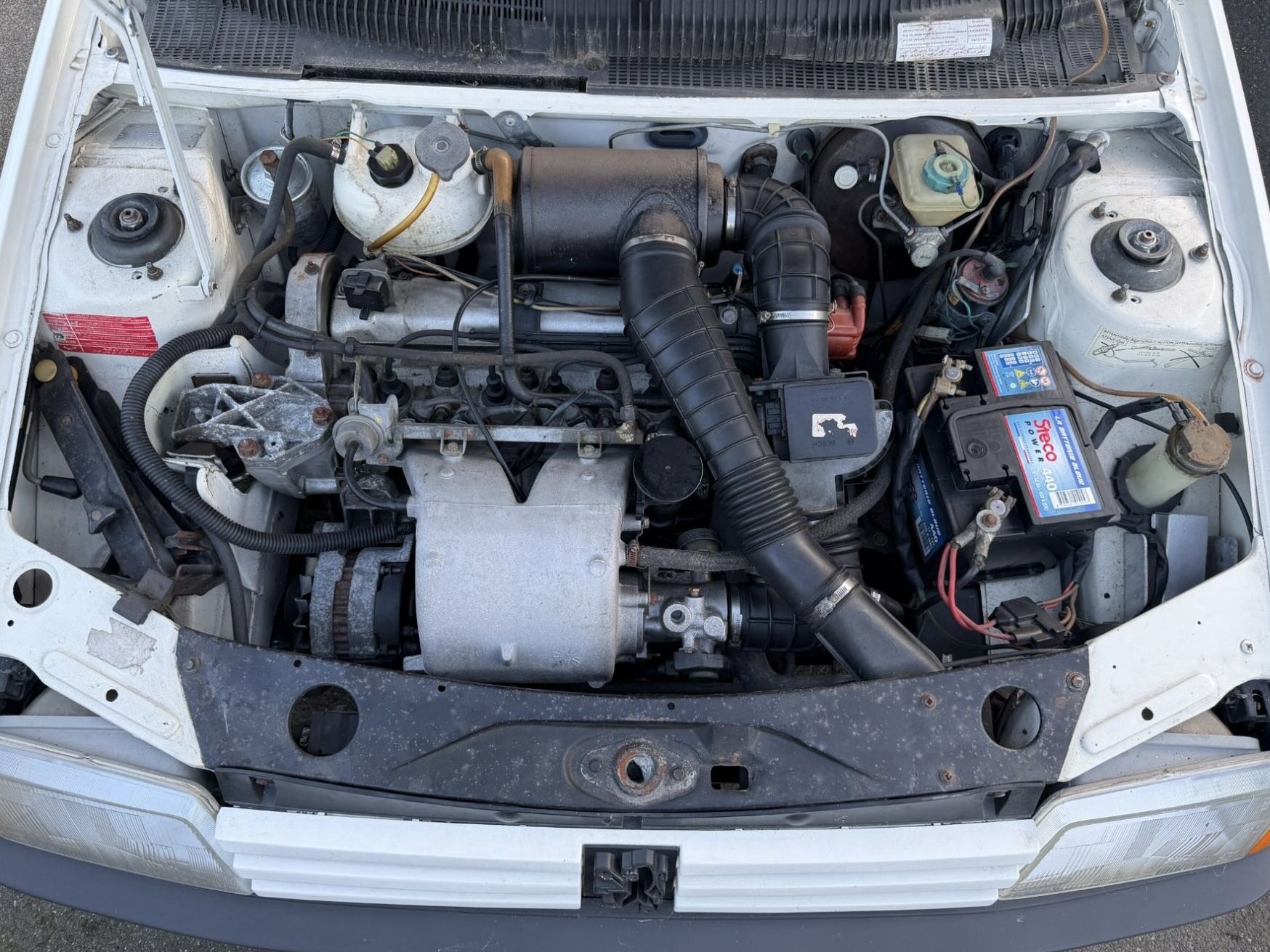 Le moteur est un 4 cylindres de 1.6 litres développant 105 cv. Le vendeur indique que la mécanique fonctionne normalement de même que la boîte de vitesse. Le vendeur dispose de factures visibles dans la galerie. Récemment, elle a bénéficié des entretiens suivants :