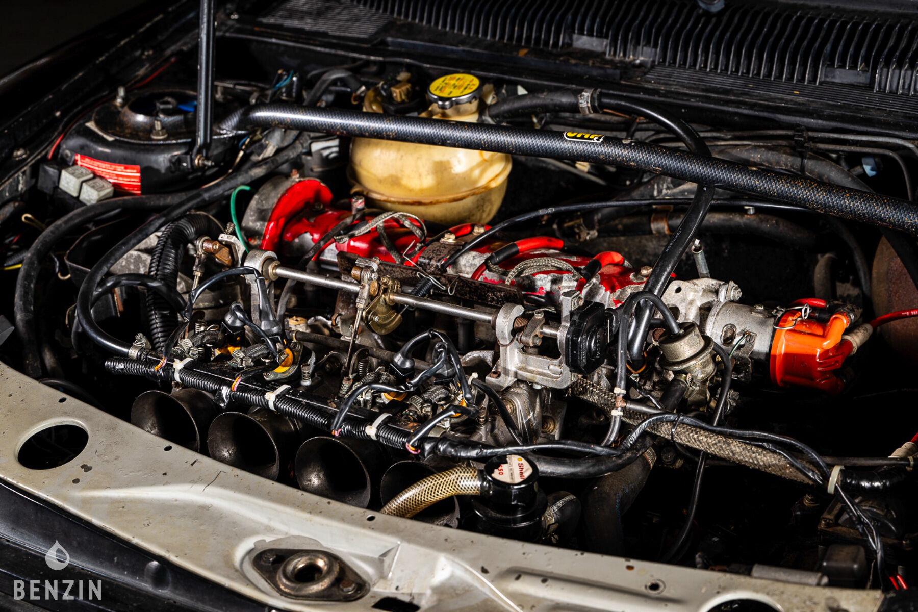 Le moteur est un 4 cylindres 1.9 de 130ch. Le vendeur indique que la mécanique fonctionne normalement de même que la boîte de vitesse. Le vendeur précise que la voiture a bénéficié de l'installation de quatre cornets d'admission (ITB) et d'une barre anti-rapprochement.