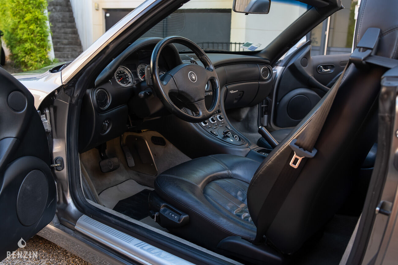 Cette Maserati 4200 Spyder Cambiocorsa de 2002 d’origine monégasque affiche 65.000 km, kilométrage certifié par un rapport Histovec. Le vendeur indique que le véhicule est en bon état général et qu’il a bénéficié de frais récents.