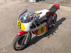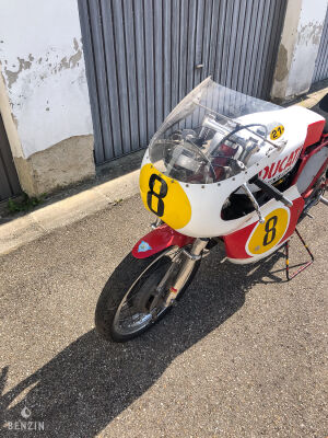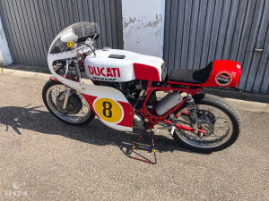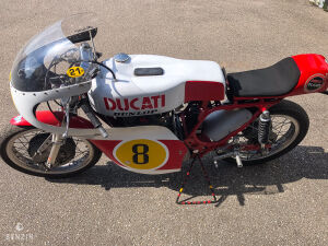 Cette Ducati 450 Desmo de 1966 est en bon état général et a bénéficié de frais récents. Le vendeur indique que cette Ducati Desmo a été retravaillée par Ivo Tosi Imola pour le magazine Motociclismo d'Epoca, pour ressembler à celle pilotée par Bruno Spaggiari. Elle a participé au Tourist Trophy de 1998.