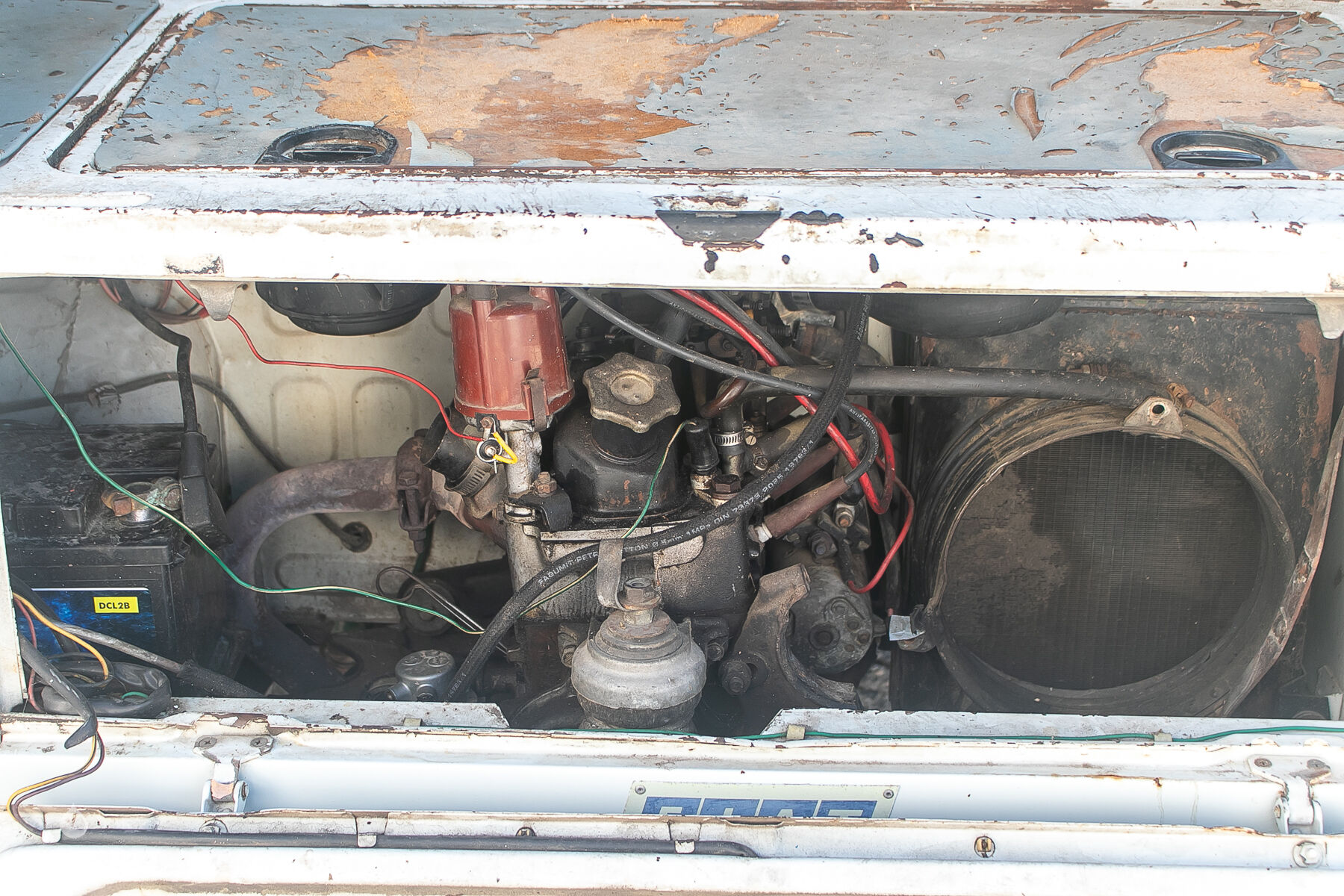 Le 4 cylindres de 843 cc développait 35 cv à sa sortie d’usine. Le vendeur indique qu’une révision complète sera à prévoir en vue d’un usage routier bien que le véhicule démarre. Il précise notamment que la pompe à eau sera à remplacer.