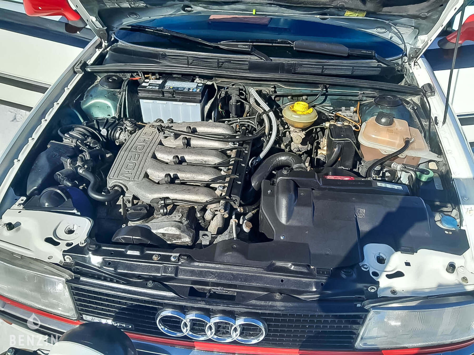 Cette Audi 90 2.0 Quattro de 1988 d’origine espagnole affiche 228.500 km. Le vendeur indique que le véhicule est en bon état général et qu’il a bénéficié de frais récents. Le vendeur indique que cette voiture appartient à une employé de la marque Audi et que tout le travail de covering, traitements des soubassements, frais moteur a été fait chez Audi. Cette Audi a été achetée en 1988 dans la concession Audi Burgos, à Burgos, Espagne.A l’extérieur, le vendeur indique que le véhicule est en bon état. La carrosserie dans sa teinte blanche ne présente que quelques défauts visibles dans la galerie. Le vendeur précise qu'à la demande de la propriétaire de cette 90 Quattro, la carrosserie verte d’origine à été repeinte en blanche puis un covering Audi Sport a été posé. Des photos des soubassements sont disponibles dans la galerie. Il indique également que les soubassements ont bénéficié d’un traitement anti rouille en 2019.A l’intérieur, le vendeur indique que le véhicule est en bon état. La sellerie en tissu gris présente des traces d’usage. Le volant et le tableau de bord sont en bon état. Le vendeur indique que le ciel de toit se décolle. L’instrumentation de bord ainsi que les équipements électriques fonctionnent normalement. Le 5 cylindres de 2.0 litres développait 160 cv à sa sortie d’usine. Le vendeur indique que la mécanique fonctionne normalement de même que la boîte Manuelle. Le vendeur dispose du carnet et de factures visibles dans la galerie.