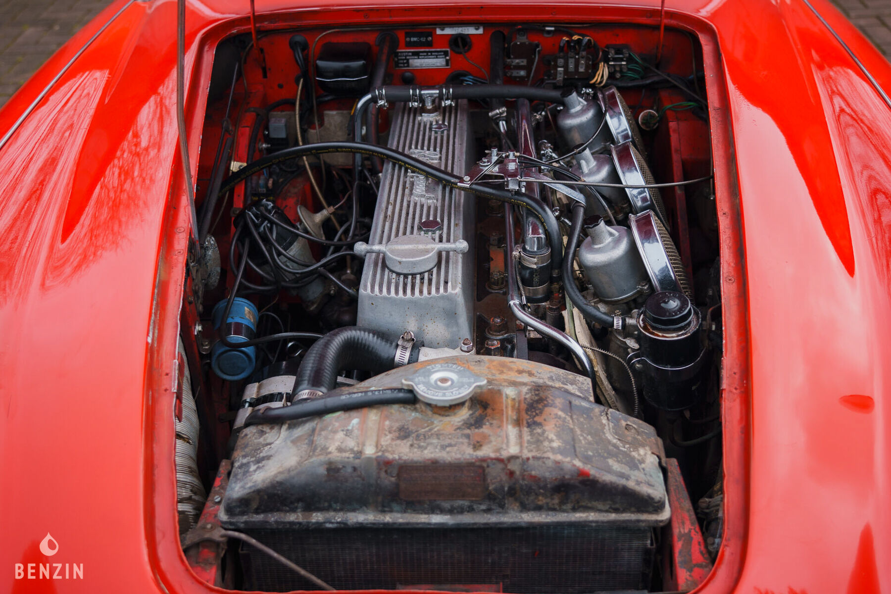 Le 6 cylindres de 3.0 litres développait 132 cv à sa sortie d’usine. Le vendeur indique que la mécanique fonctionne normalement de même que la boîte Manuelle. Le vendeur indique que le moteur bénéficie d’améliorations effectuées par Ruddspeed, il est équipé notamment de 3 carburateurs spécifiques. Il estime l’apport de puissance à environ 40 ch supplémentaires. L’auto bénéficiera d’une révision standard et d’une inspection complète pour la vente.