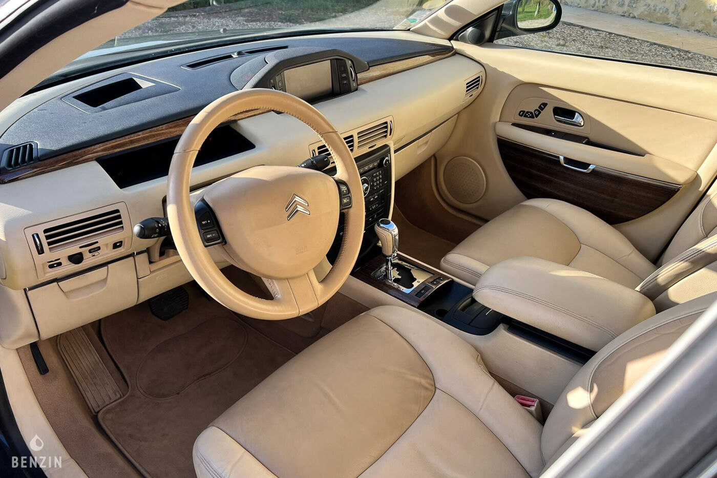 À l’intérieur, le vendeur indique que le véhicule est en bon état. La sellerie en cuir beige ne comporte ni déchirure ni trou mais présente de légères traces d’usure. Le volant et le tableau de bord sont en bon état. L’instrumentation de bord ainsi que les équipements électriques fonctionnent normalement.