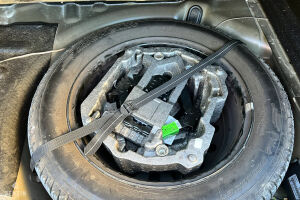 La voiture dispose de ses 4 jantes d’origine en état moyen, chaussées de pneus en bon état. La voiture freine normalement.