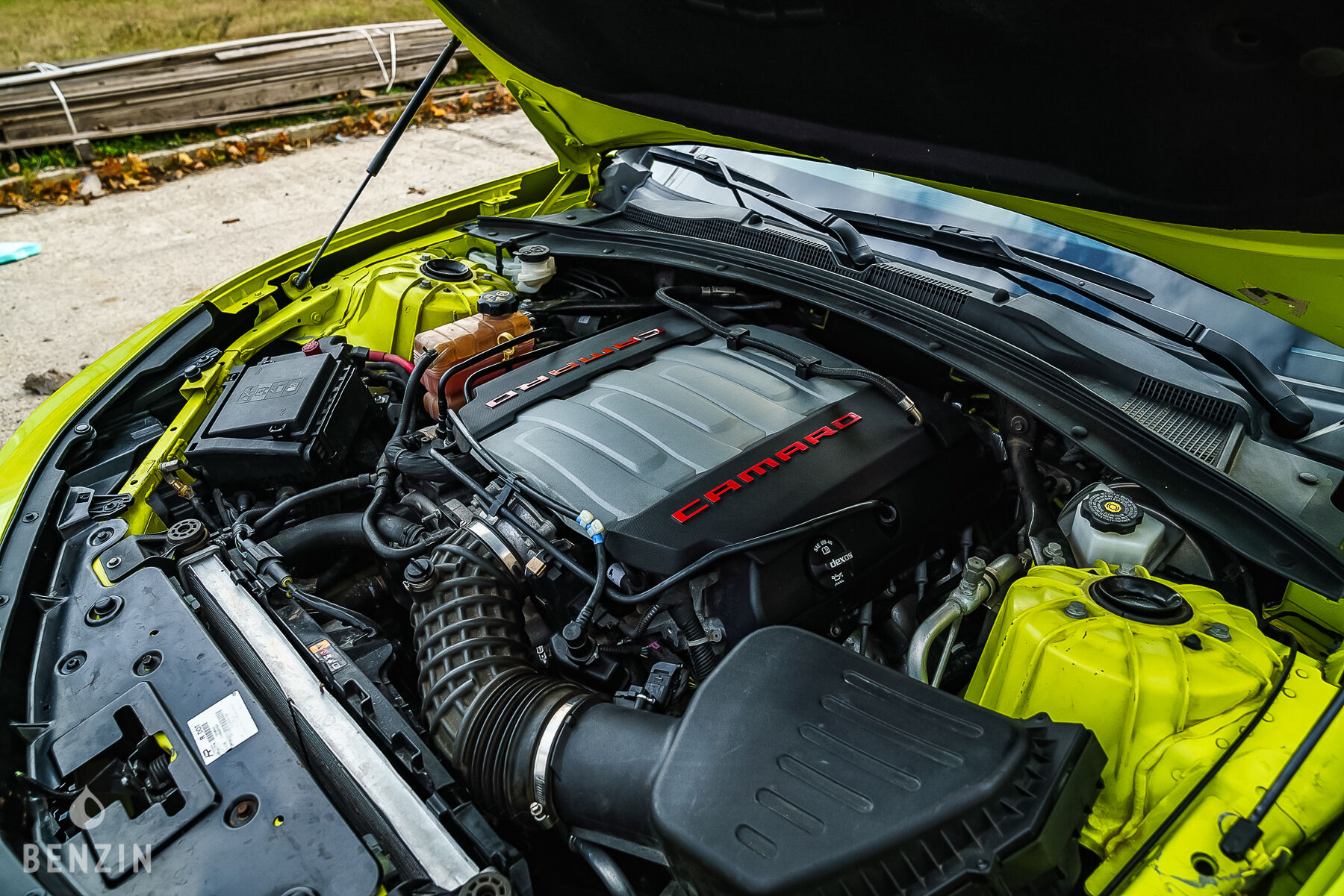Le 8 cylindres de 6.2 litres développait 461 cv à sa sortie d’usine. Le vendeur indique que la mécanique est fonctionnelle de même que la boîte Manuelle. Le vendeur indique que l’auto est équipée d’une ligne d’échappement complète de Camaro ZL1.