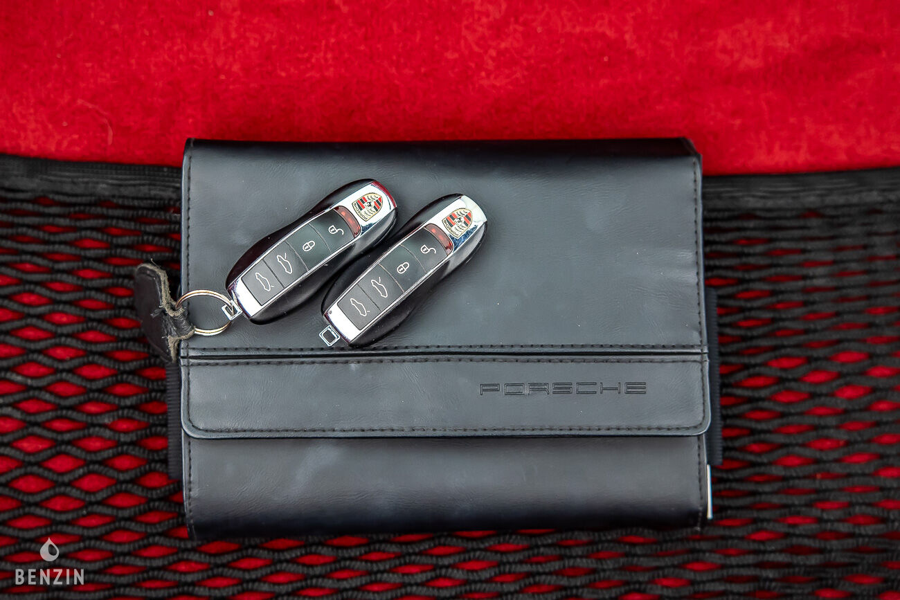 Belül az eladó szerint a jármű jó állapotban van. A piros "Carrera Red" bőrkárpit nem szakadt vagy lyukas, de enyhe kopásnyomokat mutat. A kormánykerék és a műszerfal jó állapotban van. A fedélzeti műszerek és az elektromos berendezések normál működési állapotban vannak.