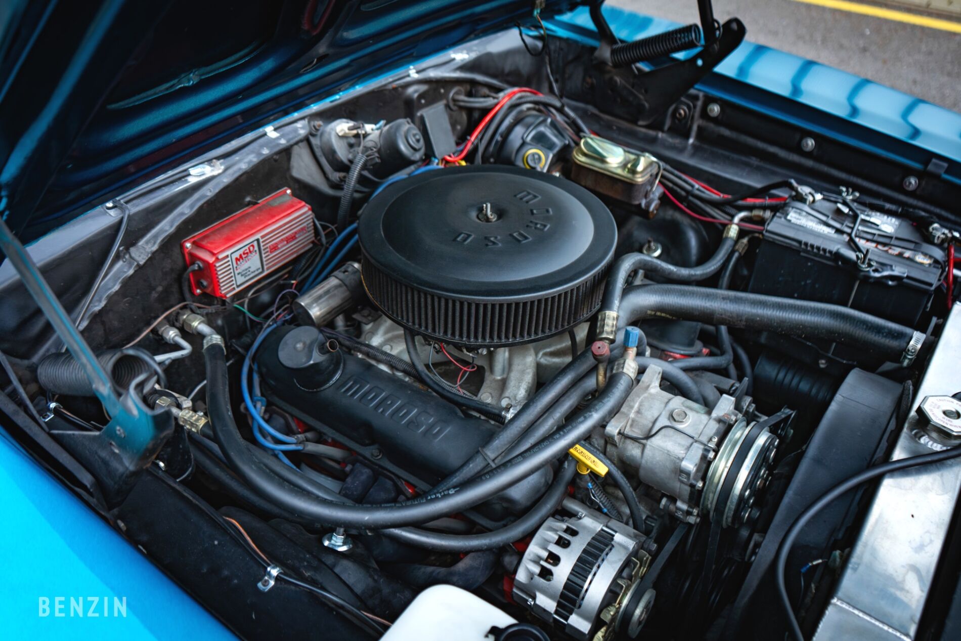 Le moteur est un V8 360ci "stroked" à 408ci (environ 6.8L) développant une puissance estimée à 400 ch. Le vendeur indique que la mécanique fonctionne normalement de même que la boîte de vitesse automatique type 904 - il relève que cette dernière ayant été optimisée avec un premier rapport raccourci, et couplée à un pont arrière 2.94. Il note en revanche que le fonctionnement du convertisseur de couple n'est pas optimal. Le vendeur précise que le moteur / boite d'origine (383ci / 727 TorqueFlite) ne sont pas fournis.