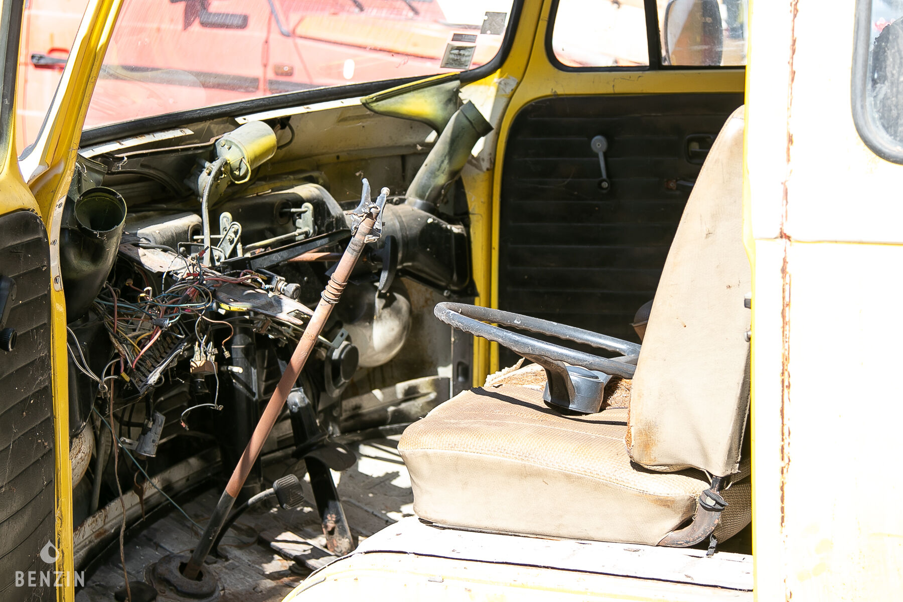 A l’intérieur, le vendeur indique que le véhicule est en mauvais état. La sellerie est en mauvais état. Le volant et le tableau de bord sont en mauvais état.