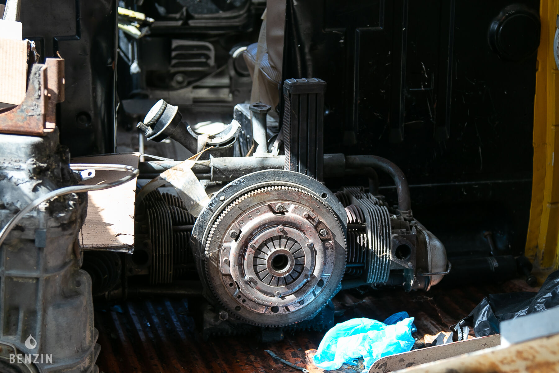 Le moteur est un 4 cylindres. Le vendeur indique que la mécanique est actuellement démontée.