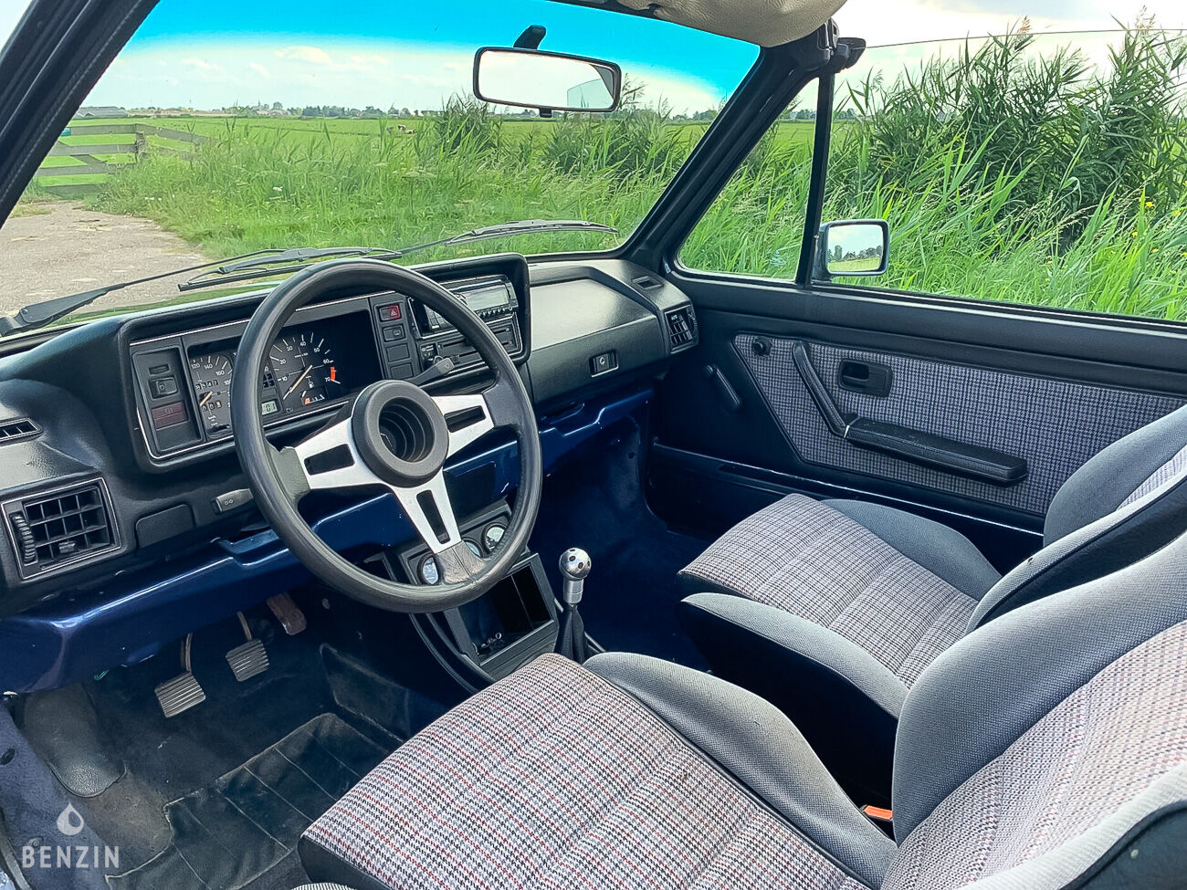 A l’intérieur, le vendeur indique que le véhicule est en bon état. La sellerie en tissu ne comporte ni déchirure ni trou mais présente de légères traces d’usure. Le volant et le tableau de bord sont en bon état. L’instrumentation de bord ainsi que les équipements électriques fonctionnent normalement, à l'exception de l’aiguille du compte tour, de la jauge d’essence et du thermomètre.