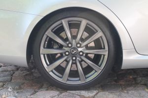 La voiture dispose de ses 4 jantes d’origine en bon état (le vendeur relève quelques traces de frottement), chaussées de pneus Michelin Pilot Sport 4S. La voiture freine normalement.
