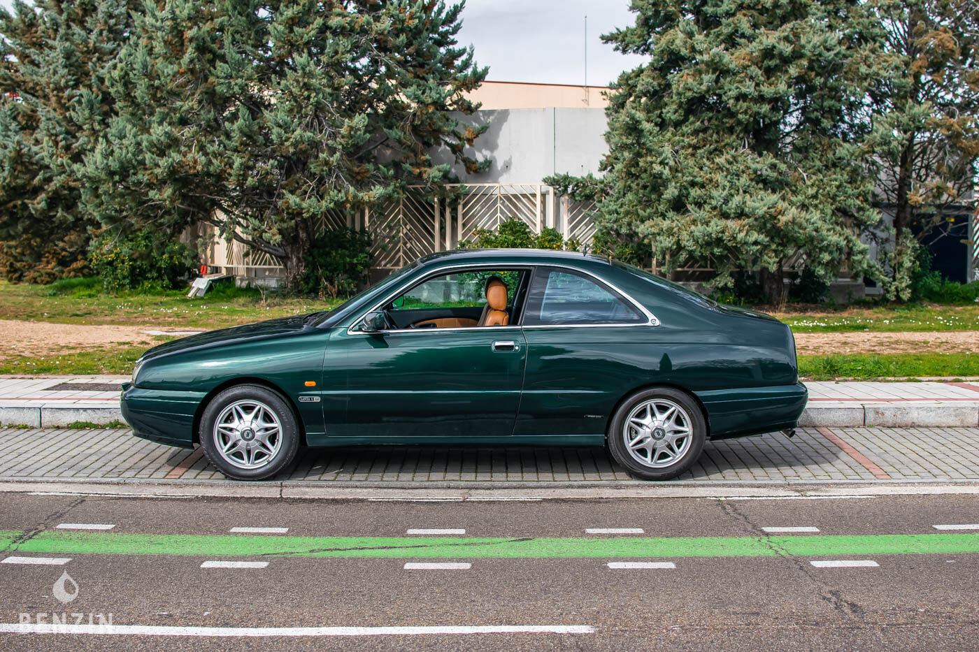 A l’extérieur, le vendeur indique que le véhicule est en bon état. La carrosserie dans sa teinte verte (Verde plutone métallisé, code 384a) ne présente que quelques défauts visibles dans la galerie. Le vendeur indique de léger défaut de peinture au niveau du toit.Des photos des soubassements sont disponibles dans la galerie.