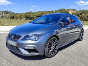 Cette Seat Leon Cupra 300 de 2017 d’origine espagnole affiche 119.200 km. Le vendeur indique que le véhicule est en bon état général et qu’il a bénéficié de frais récents.