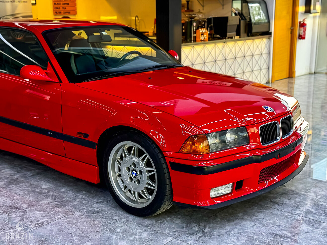 Cette BMW M3 3.0 type e36 de 1994 d’origine japonaise affiche 76.900 km, certifié par la présence de documents d'inspection japonais. Le vendeur indique que le véhicule est en bon état général et qu’il a bénéficié de frais réguliers.