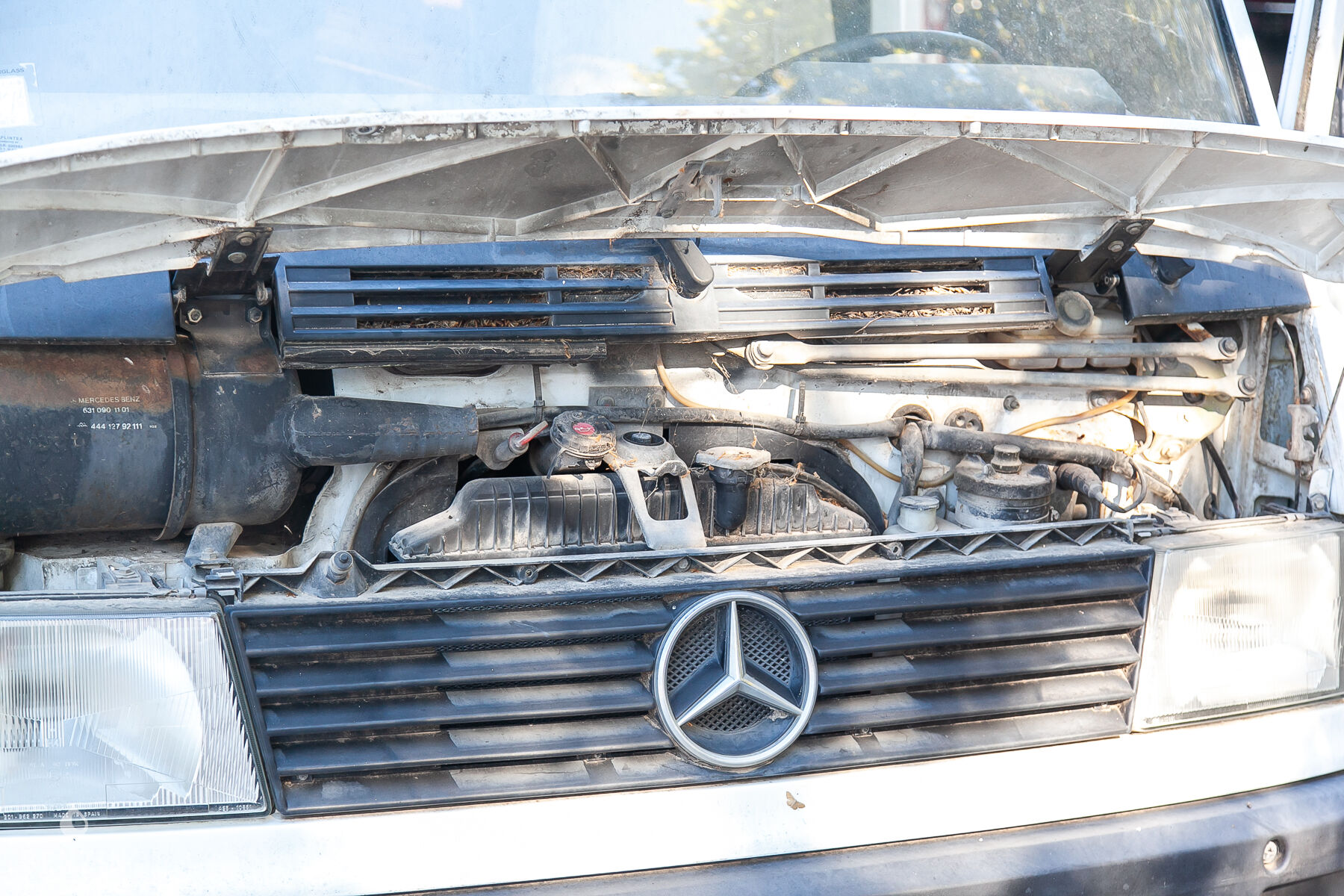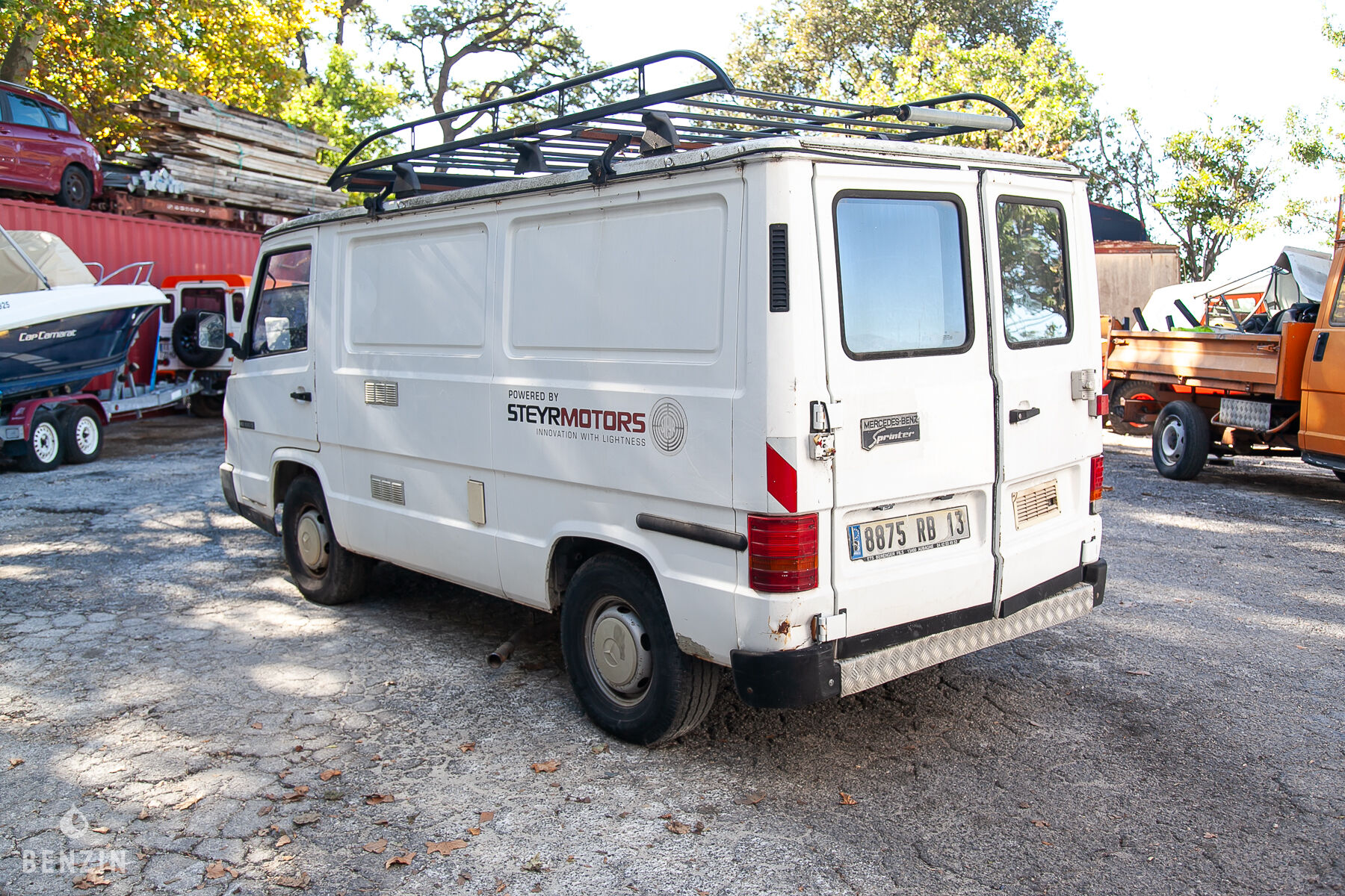 Cette Mercedes MB100d Sprinter affiche 246.000 km. Le vendeur indique que le véhicule est en est à restaurer et sera vendu comme projet.
