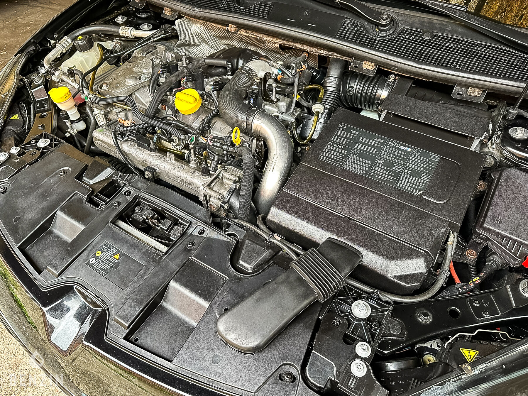 A l’extérieur, le vendeur indique que le véhicule est en bon état. La carrosserie dans sa teinte noire ne présente que quelques défauts visibles dans la galerie. Des photos des soubassements sont disponibles dans la galerie.