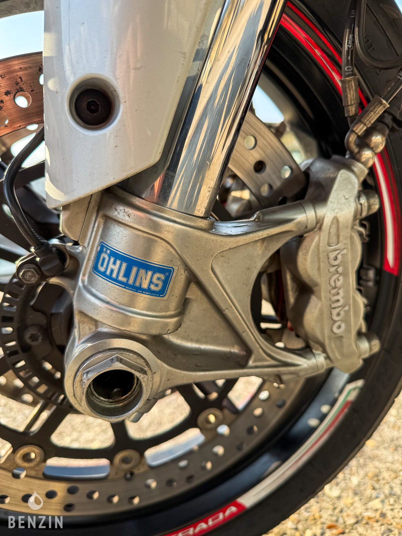 La moto dispose de ses jantes d’origine en bon état chaussées de pneus neufs. La moto freine normalement. La fourche, le bras oscillant et la chaîne sont en bon état.