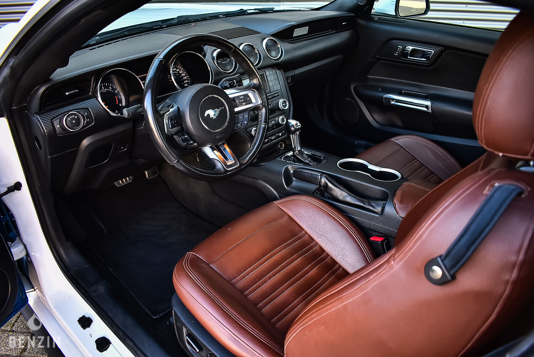 A l'intérieur, le vendeur indique que le véhicule est en bon état. La sellerie en cuir marron ne présente pas de déchirures ni de trous. Le volant et le tableau de bord sont en bon état.