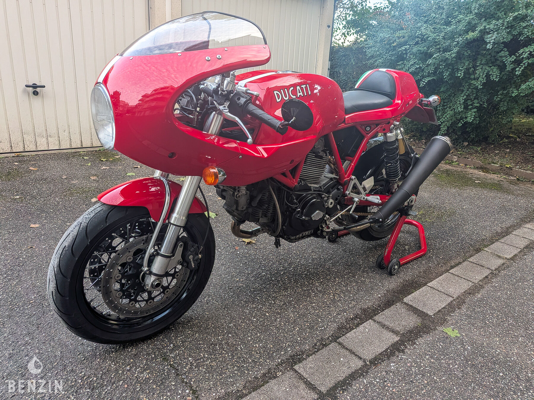 - Coque arrière monoplace ITALOSHOP avec liseret italien sur le cuir avec peinture professionnelle (même teinte que l'origine, bande blanche, écriture ducati (pas un autocollant)).