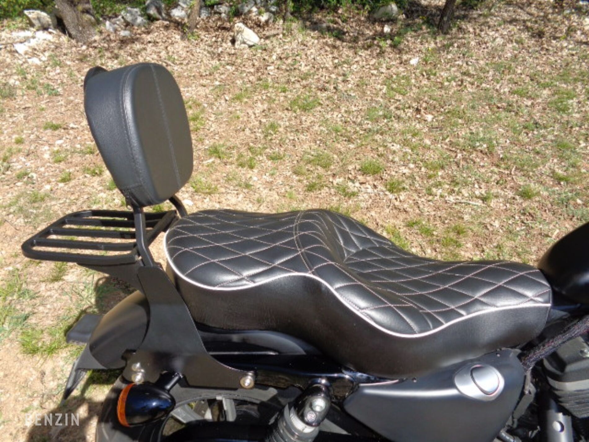 Esthétiquement, le vendeur indique que le véhicule est en bon état. Les éléments de carrosserie dans leur teinte noire mate (Charcoal Satin) ne présentent pas de défaut majeur La selle biplace personnalisée avec surpiqûres en losanges est en très bon état. Cette moto dispose des équipements suivants :
