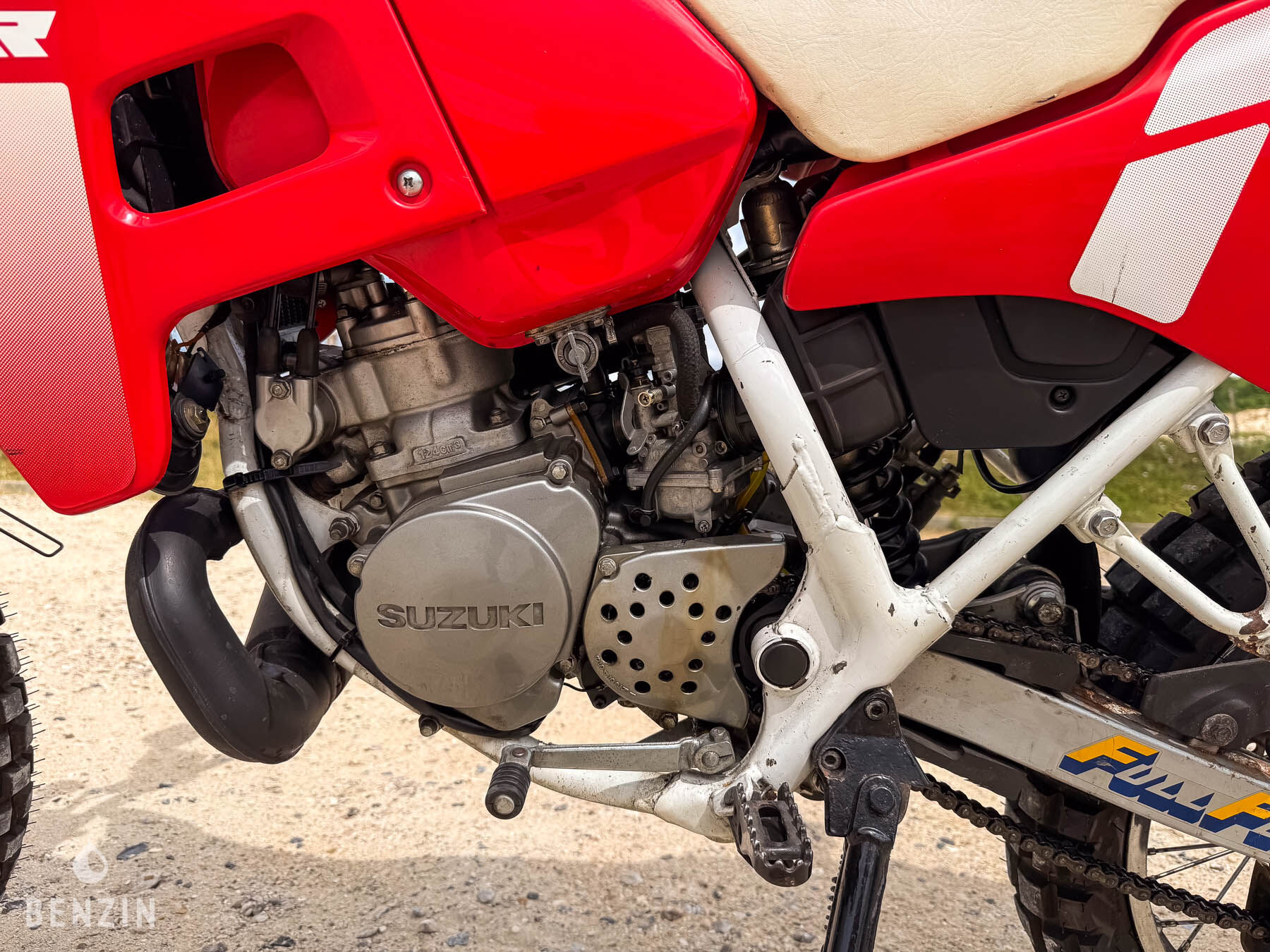 Le moteur est un monocylindre 2 temps de 125 cm³. Il est lubrifié avec de l’huile Motul 2T. Le vendeur précise que les freins et les pneus sont récents (moins de 500 km). Les jantes, le bras oscillant et la chaîne sont en bon état. L’ensemble des équipements électriques est fonctionnel. Le vendeur dispose de factures d’entretien.