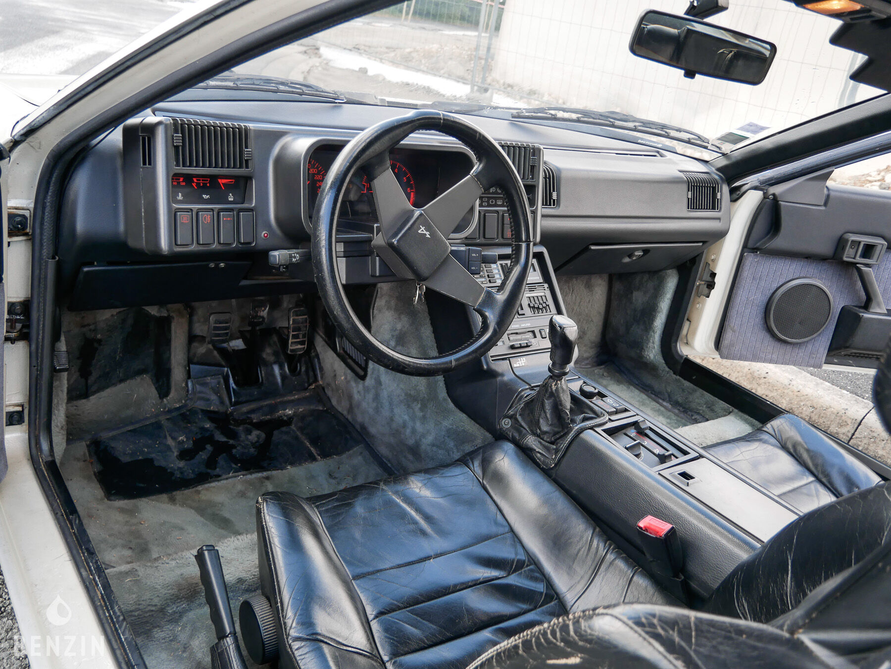 Im Inneren gibt der Verkäufer an, dass sich das Fahrzeug in einem guten Zustand befindet. Die schwarze Lederpolsterung weist Gebrauchsspuren auf. Das Lenkrad und das Armaturenbrett sind in gutem Zustand. Die Bordinstrumente sowie die elektrischen Geräte funktionieren mit Ausnahme der Tankanzeige normal.