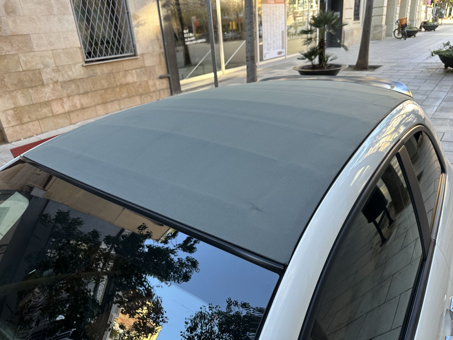 Auf der Außenseite gibt der Verkäufer an, dass das Fahrzeug in guter Zustand. Die Karosserie in ihrer weißen Farbe (Gara White, Code 268A) keine nennenswerten Mängel aufweist. Fotos des Unterbodens sind in der Galerie verfügbar. Der Verkäufer gibt an, dass das Stoffverdeck in gutem Zustand und funktionstüchtig ist.