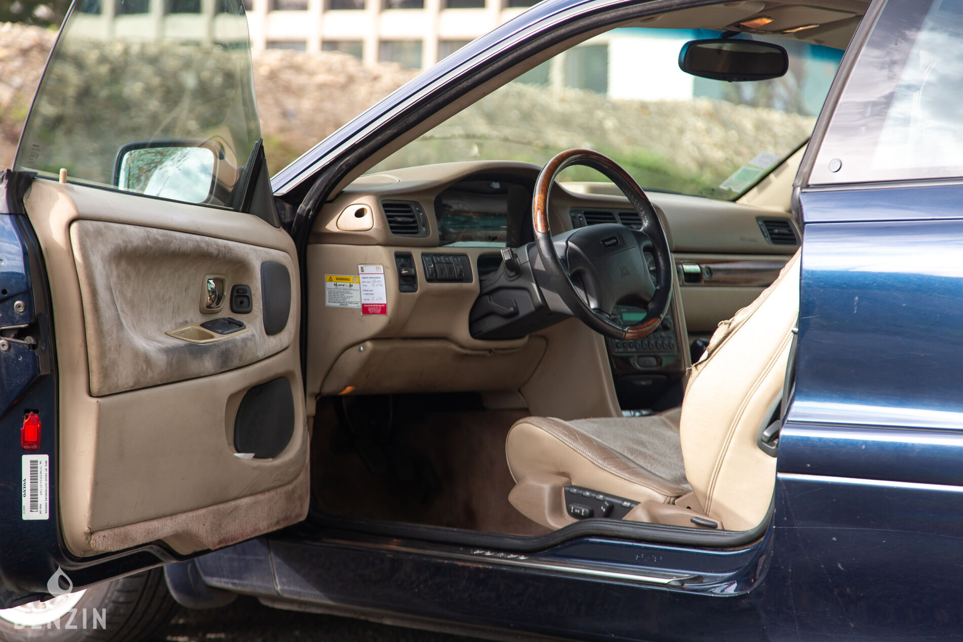 Belül az eladó szerint a jármű átlagos állapotban van. A bézs színű bőr és alcantara kárpitozás használat nyomát mutatja. Az eladó különösen megjegyzi, hogy a vezetőülés megromlott, a tetőkárpit pedig levált. A kormánykerék és a műszerfal jó állapotban van. A fedélzeti műszerek és az elektromos berendezések rendben működnek, kivéve a légkondicionálót (nem vizsgálták). Az autó a következő felszereltséggel érkezik: