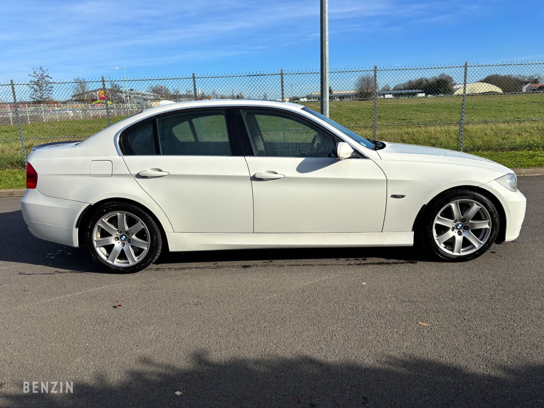 All'esterno, il venditore indica che il veicolo è in buone condizioni. La carrozzeria, di colore Alpinweiss, presenta tuttavia alcuni difetti: un graffio sul paraurti anteriore sinistro che potrebbe richiedere una verniciatura, nonché microdifetti visibili da vicino. Sono stati aggiunti parafanghi allargati e uno spoiler posteriore in carbonio.