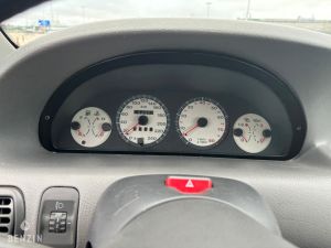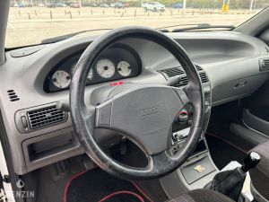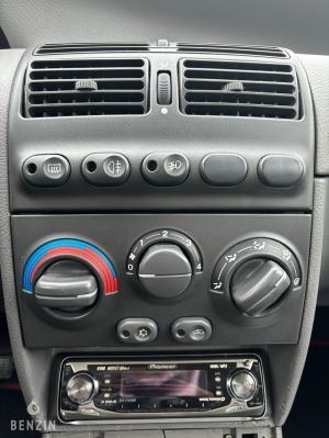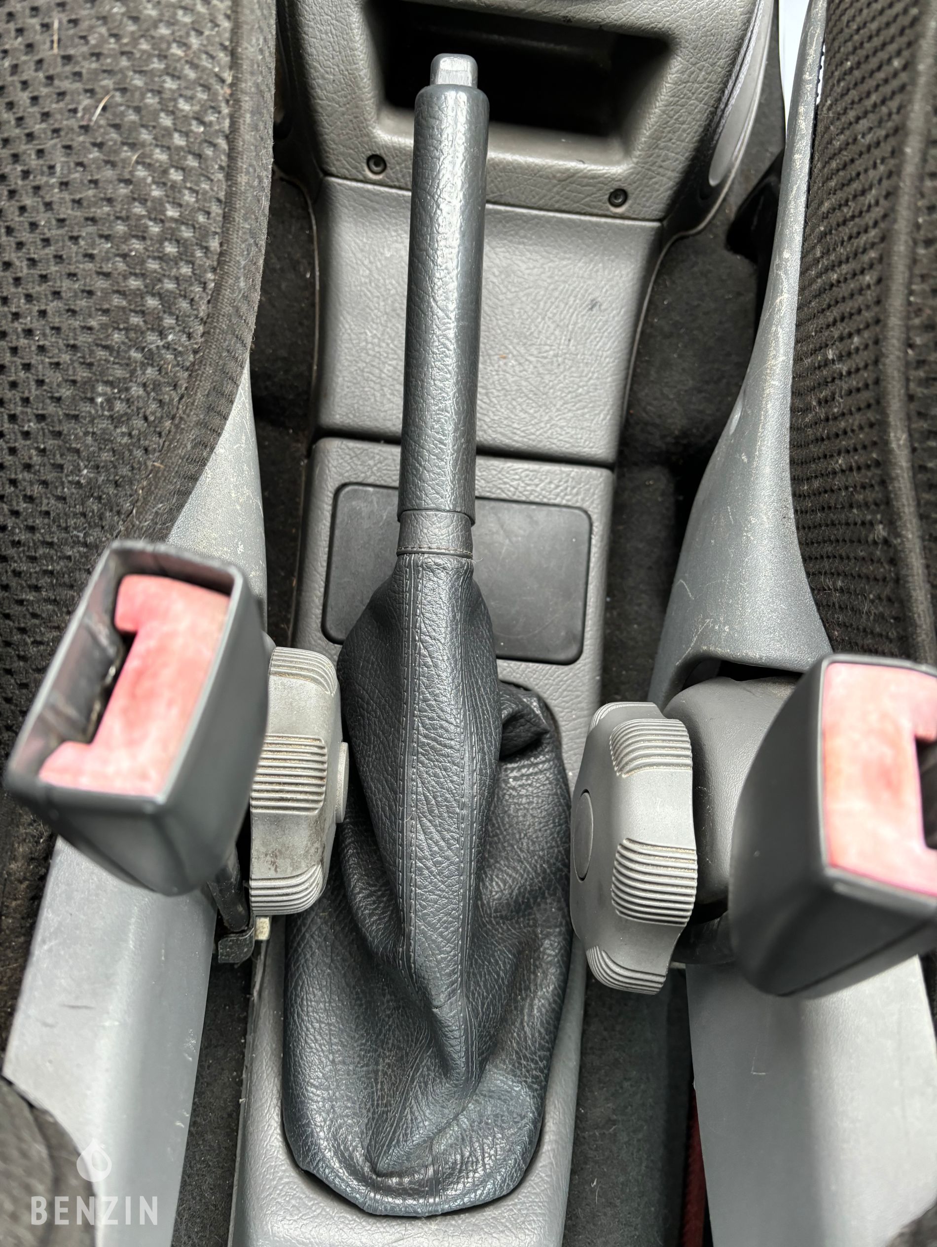 All'interno, il venditore dichiara che il veicolo è in buone condizioni. La tappezzeria in tessuto nero e grigio mostra segni di utilizzo. Lo schienale del conducente presenta uno strappo. Il volante e il cruscotto sono in buone condizioni. La strumentazione di bordo e l'impianto elettrico sono in condizioni normali. Tuttavia, il venditore indica che l'aria condizionata non funziona, in quanto il compressore è stato rimosso.