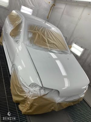 Esternamente il venditore dichiara che il veicolo è in buone condizioni. Il venditore afferma che la carrozzeria è stata completamente verniciata nel suo colore bianco originale e non presenta difetti degni di nota. Le foto del telaio sono disponibili nella galleria.