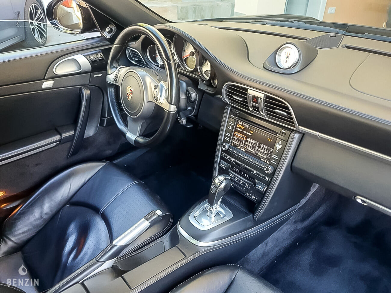 A l’intérieur, le vendeur indique que le véhicule est en bon état. La sellerie en cuir noir ne comporte ni déchirure ni trou mais présente de légères traces d’usure. Le volant et le tableau de bord sont en bon état. L’instrumentation de bord ainsi que les équipements électriques fonctionnent normalement. Cette Porsche dispose notamment des options suivantes :