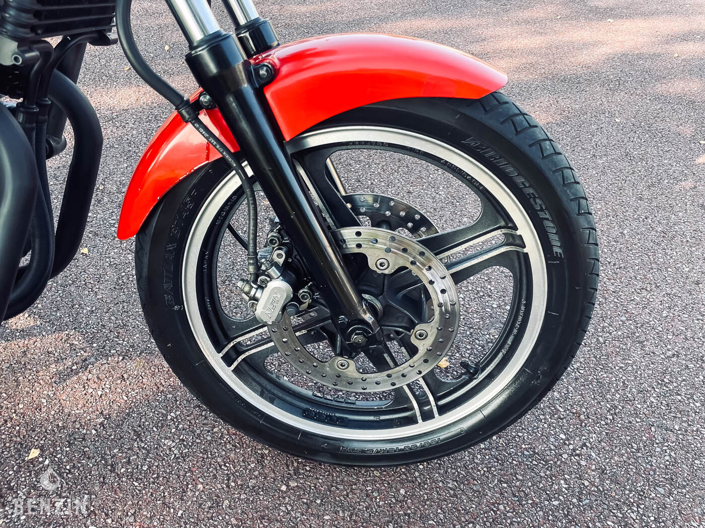 The motorbike is fitted with its original rims in good condition and with tyres in good condition. The bike brakes normally. The fork, swingarm and chain are in good condition.