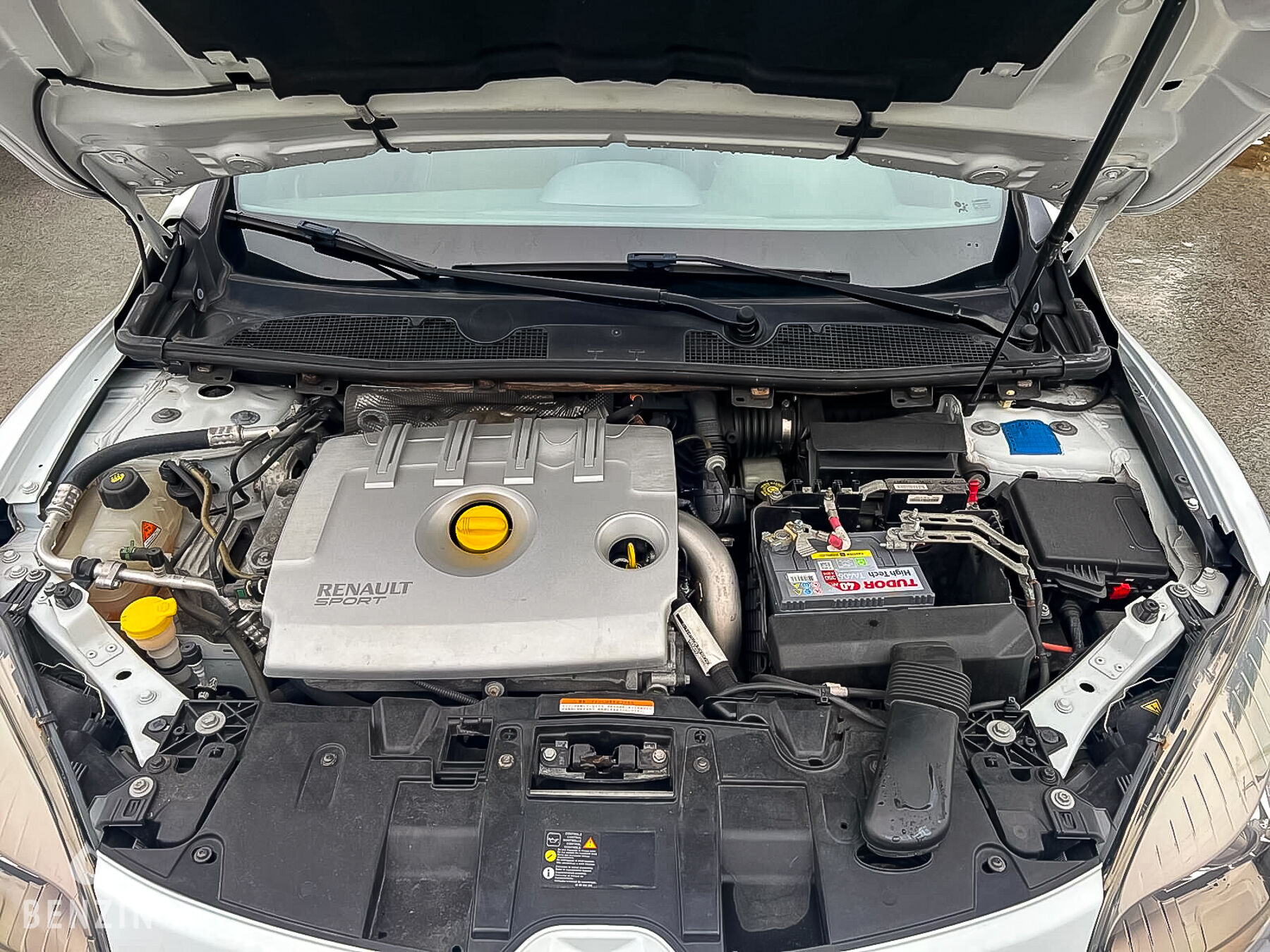 Inside, the seller states that the vehicle is in very good condition. The Recaro upholstery has no tears or holes. The steering wheel and dashboard are in very good condition. The on-board instrumentation and electrical equipment are in normal working order. This Renault comes with the following equipment: