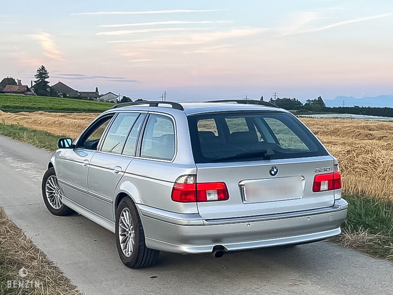 To BMW 530i Touring typu e39 z 2003 roku, pochodzące ze Szwajcarii, ma 247 900 km przebiegu, co potwierdza jego dziennik pokładowy. Sprzedawca wskazuje, że pojazd skorzystał z ostatnich wydatków.